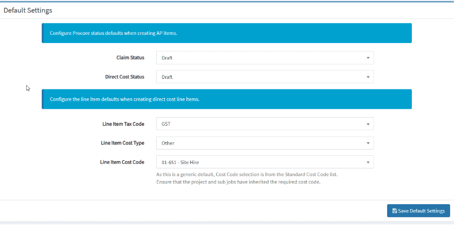 - Configure Procore status defaults when creating AP items.