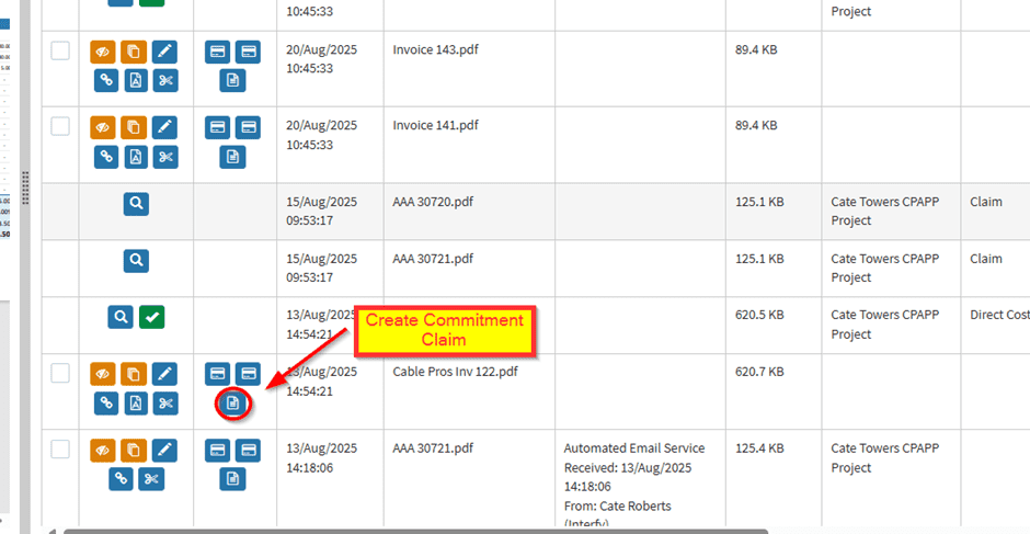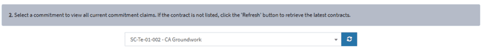 Select the commitment contract (purchase order or subcontract) to create the commitment claim for. If the commitment does not appear in the list, press the blue ‘refresh’ icon.