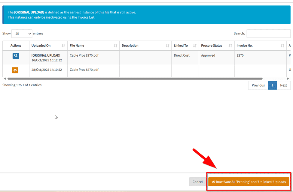 Click Inactivate All ‘Pending’ and ‘Unlinked’ Uploads to deactivate the attachments