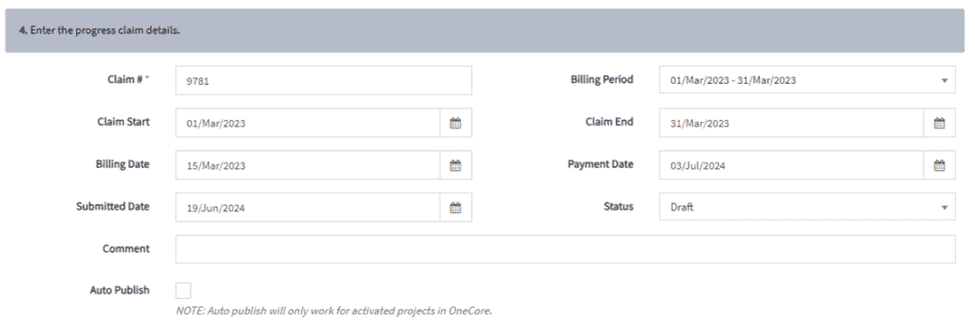 Step 4 – Enter Progress Claim Details