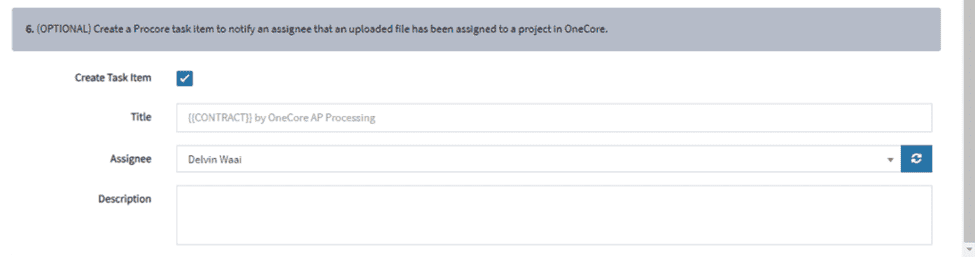 Step 6 – Create a Procore Task Item (Optional)