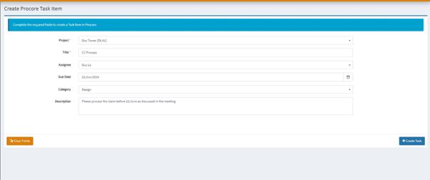 - A notification within Procore can be created for a user in Procore’s ‘Task Tool’ for the selected Assignee.