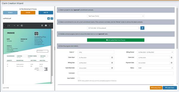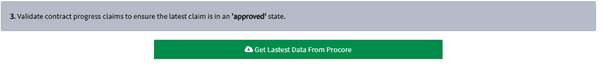 Press the ‘Get Latest Data From Procore’ button to retrieve all claims from Procore. This is required to ensure the latest claim is in ‘approved’ state.