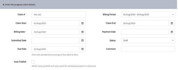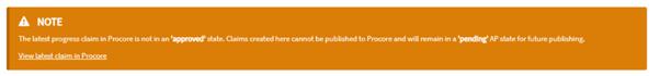 If the latest progress claim in Procore is not in an ‘approved’ state, a warning banner will show.