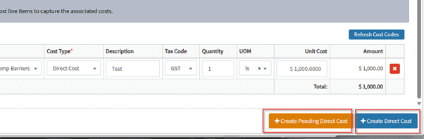 Create pending direct costs – will not publish to Procore yet and will be marked as pending in your APP dashboard.