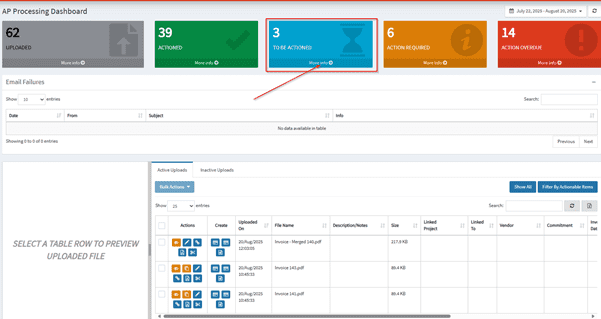 Dashboard now has “To BE Actioned” button filter (NEW)