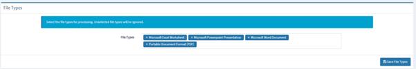 Users can select from a list of file types for processing. Only selected file types will be processed by the system, and any unselected file types will be ignored.