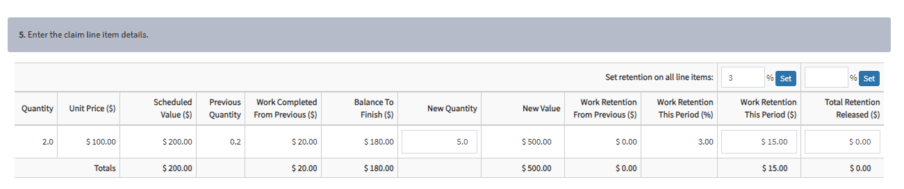 8. Ability to Apply Retention Across All Line Items When Creating Claims