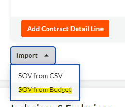 When creating a new Head Contract, select the “Import” button and select the “SOV from Budget” option.