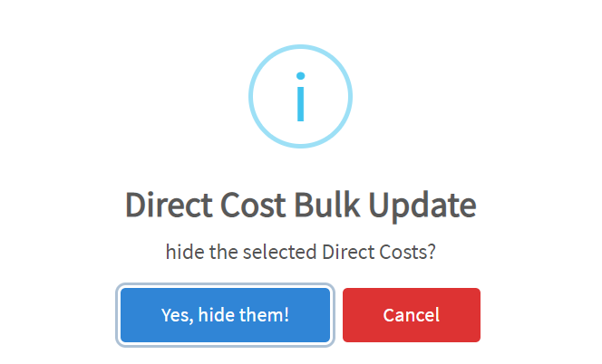 The costs can be “unhidden” by ticking the desired rows and performing a “Show” bulk action.