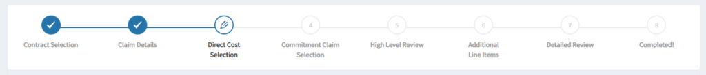- Once all desired direct costs are selected to be included in the claim, press “Next”.