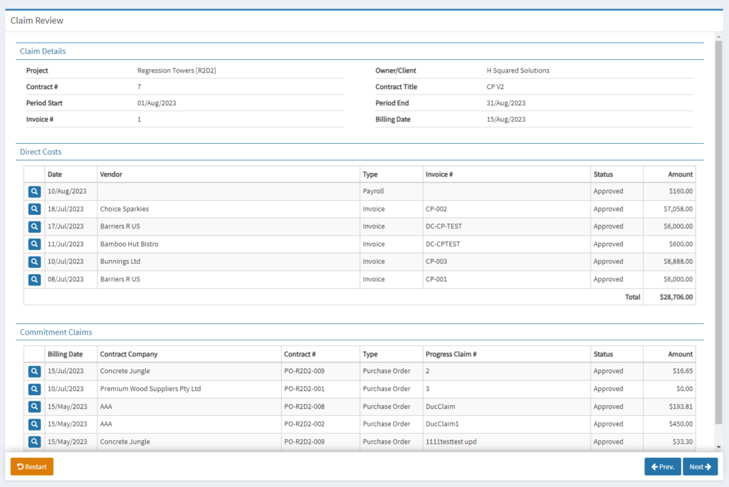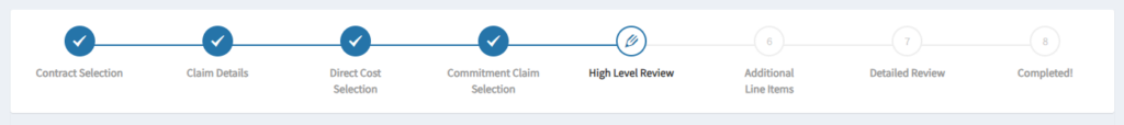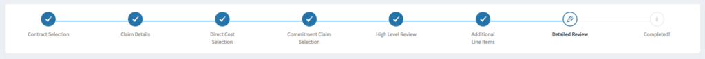 - All of the selected Direct Costs and Commitment claims will be displayed in this stage of the wizard.