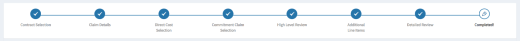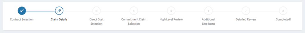 - At this point, if amendments need to be made, clicking on either the “Prev” button or clicking on the step will allow the user to adjust the Cost Plus claim.