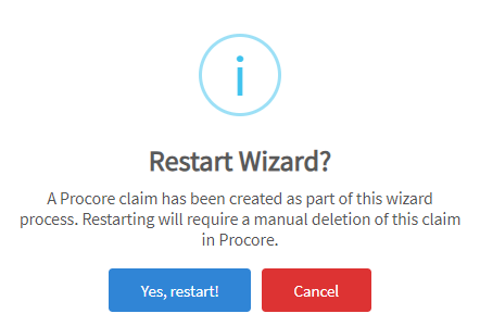 6. Once the “Next” button is pressed, a confirmation popup will appear. Once “Continue” is pressed, a Head Contract Claim will be created in Procore with the description “[CP IN PROGRESS]”