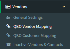 - Go to Vendors > QBO Vendor Mapping.