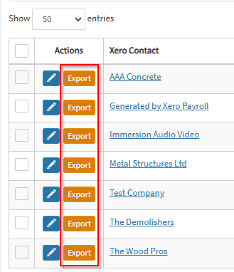 4. Click on the export button next to the Xero contact.