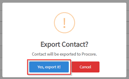 5. Click yes to export it to Procore.