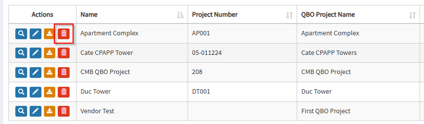 2. Find the project and click on the trash icon to delete the mapping.