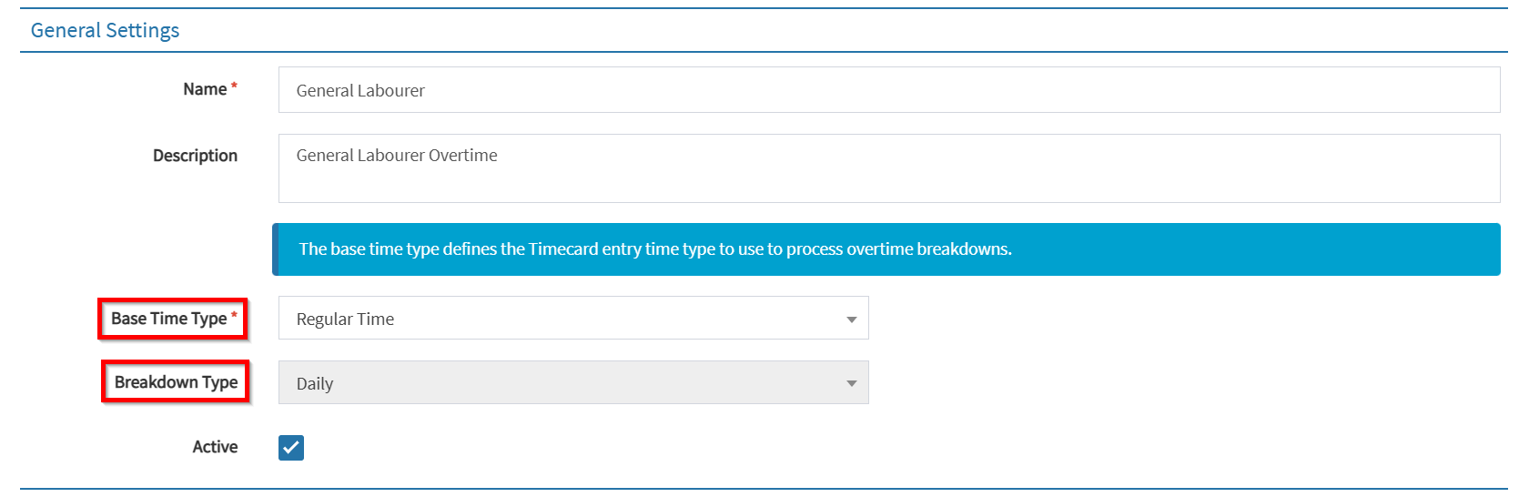 - Associate Base Time Type – Link a base time type to the overtime configuration