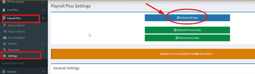 1. From OneCore Portal, go to Settings and click Refresh All Data.