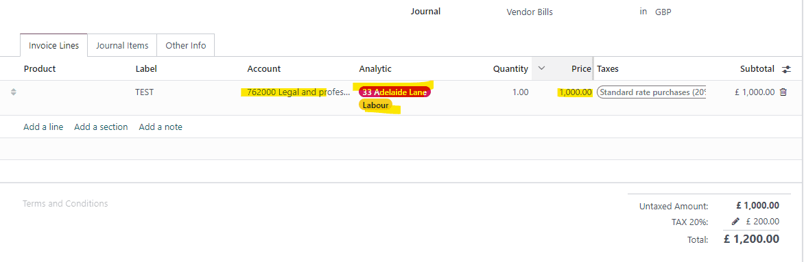 7. This is the sample invoice created from Odoo Bill that is being sent to Procore Direct Cost.