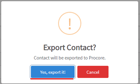 5. Click yes to export it to Procore.