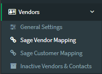 - Go to Vendors > Sage Vendor Mapping.