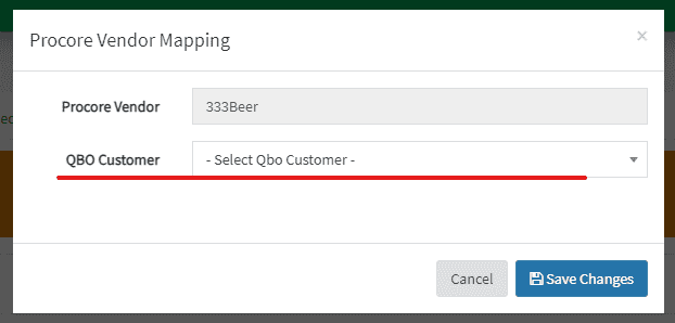 3. To map Procore Vendors, go to Vendors > QBO Customer Mapping.