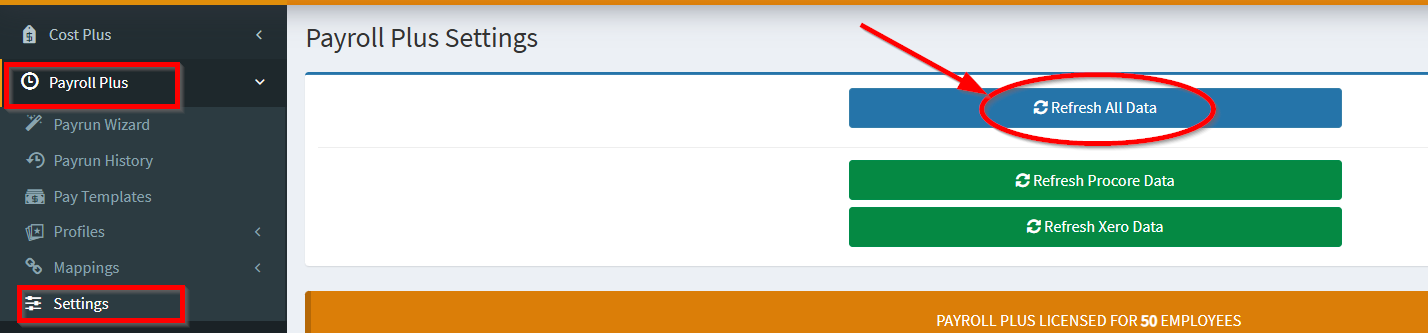 1. From OneCore Portal, go to Settings and click Refresh All Data.