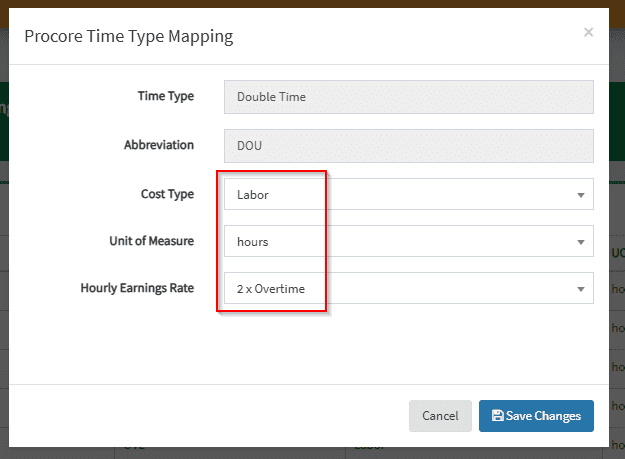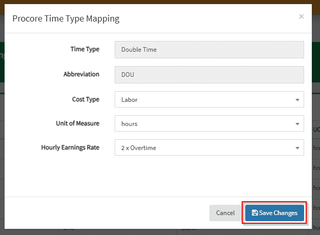 5. Establish mapping by selecting the Cost Type, Unit of Measure, and Hourly Earnings Rate in the form accordingly