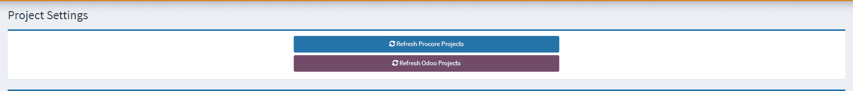 2. Click on Refresh Projects for both Procore Projects and Odoo Projects