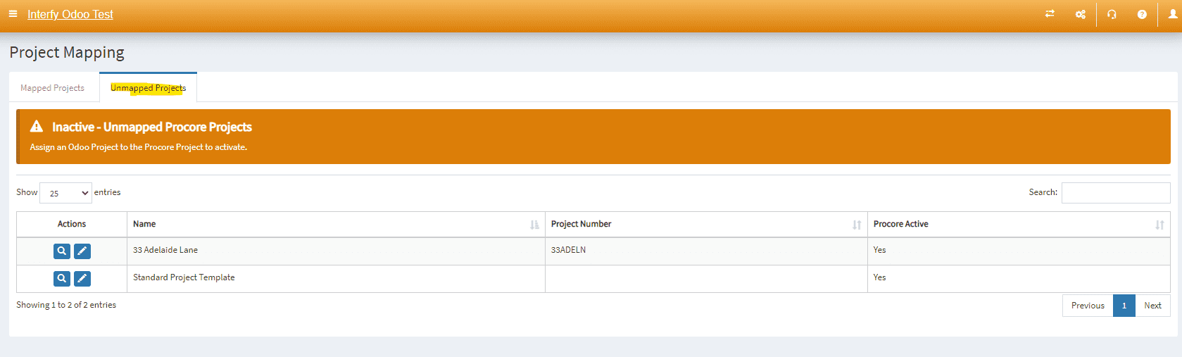 7. Once the mapping has been saved, navigate back to Mapped Projects.