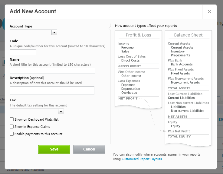 1. In Xero, create a liability account for expense retention, and an asset account for revenue retention. To do this, go to Accounting → Chart of accounts → Add Account → Fill in details → Save.