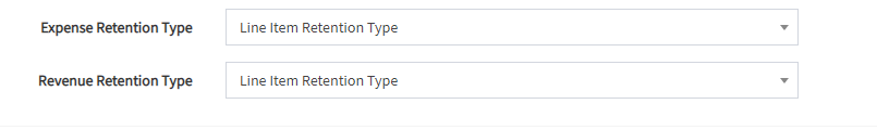 5. Set the retention type for both expense and revenue are set to Line Item Retention Type. Save Changes.