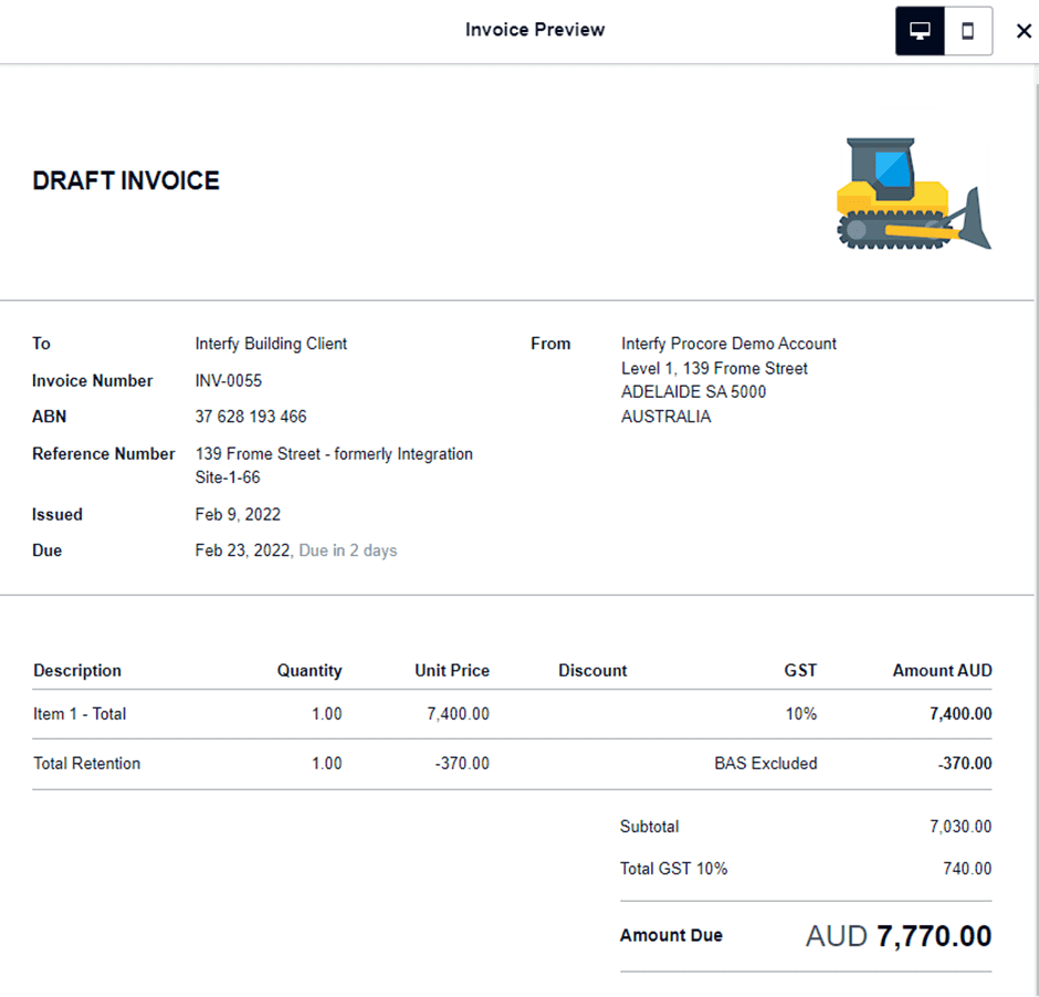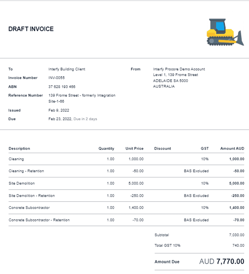 6. Retention can be shown as a separate line item on the invoices/bills in Xero. The retention amount can be shown under each line item or consolidated.