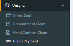 2. Navigate to OneCore > Unsync > Claim Payment