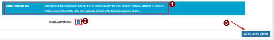 OneCore’s OCR (Optical Character Recognition) is used primarily in AP Processing to automatically read, extract, and validate data from invoices and supporting documents. The goal is to reduce manual data entry and speed up invoice processing.