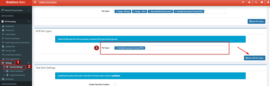 OCR can only process the file types that you select on the AP Processing settings.