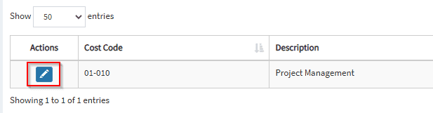 5. Click on the pencil icon to map the cost code.