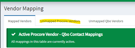1. Select “Unmapped Procore Vendors” on the tab