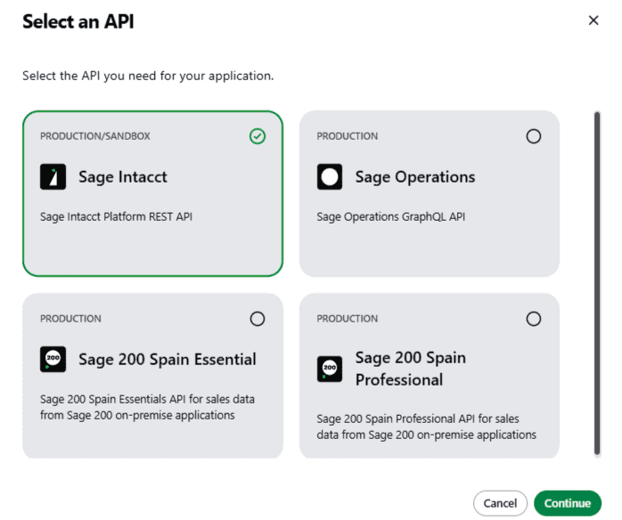 NOTE: Sage Client Id and Secret are from your Intacct application that was created in Step 2
