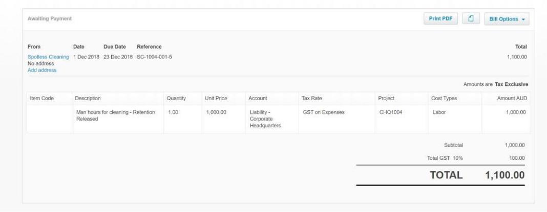 Our integration requires the use of both the tracking categories available. Tracking categories allow an invoice’s line item to hold additional information and appears as an extra line item: