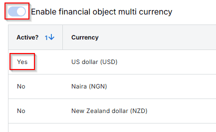 You will need to enable multi-currency within the project as well as which currency you will work with, within the project.