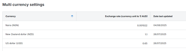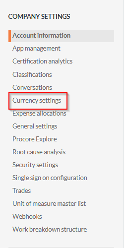 Under the Company Settings menu on the right-hand side of the screen select the Currency settings option.
