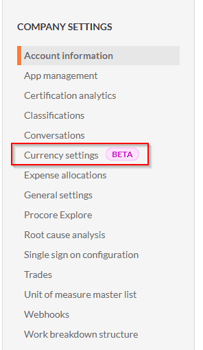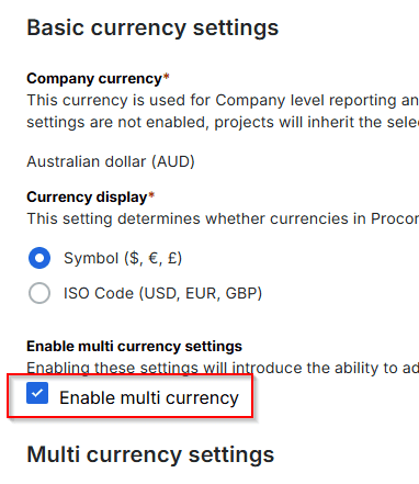 Enabling Multi-currency in Procore
