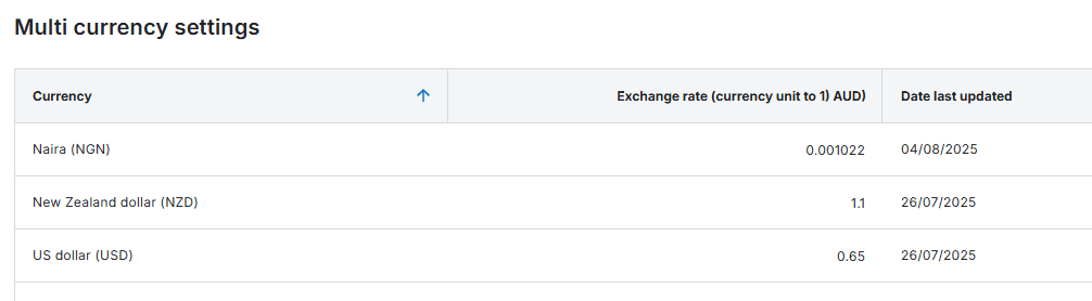 Enabling currency settings in OneCore Xero