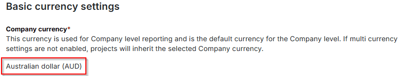 Company level currency settings
