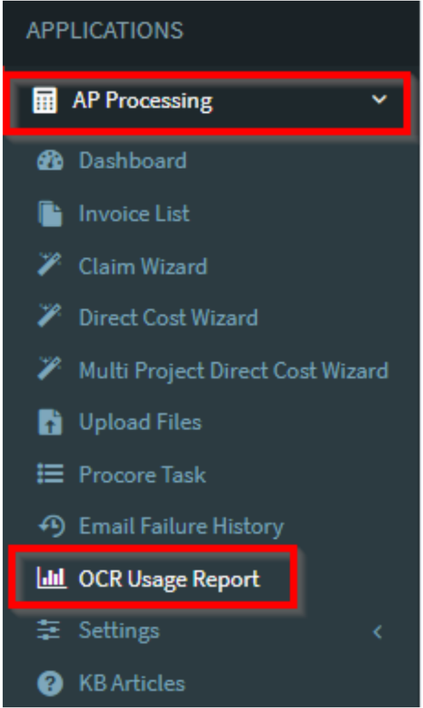 The OCR Usage Report provides visibility into Optical Character Recognition (OCR) page usage within the Accounts Payable (AP) processing. It helps users monitor month-to-date OCR consumption and review detailed page counts for reporting and reconciliation.