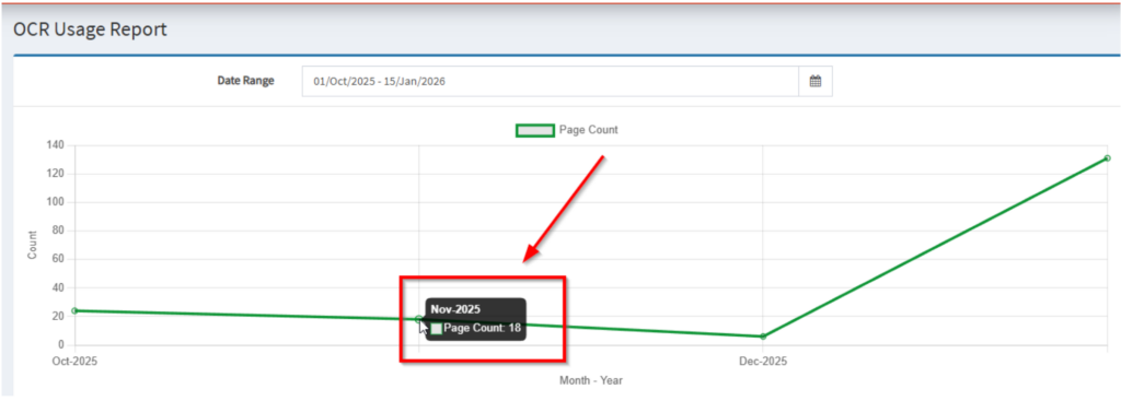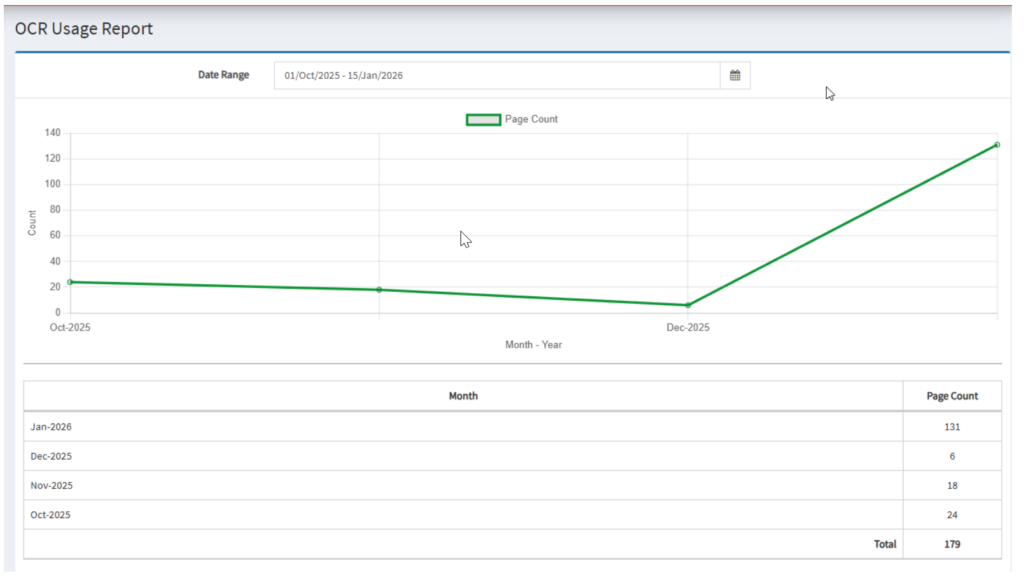 - Provides a quick visual summary of OCR consumption over the selected period