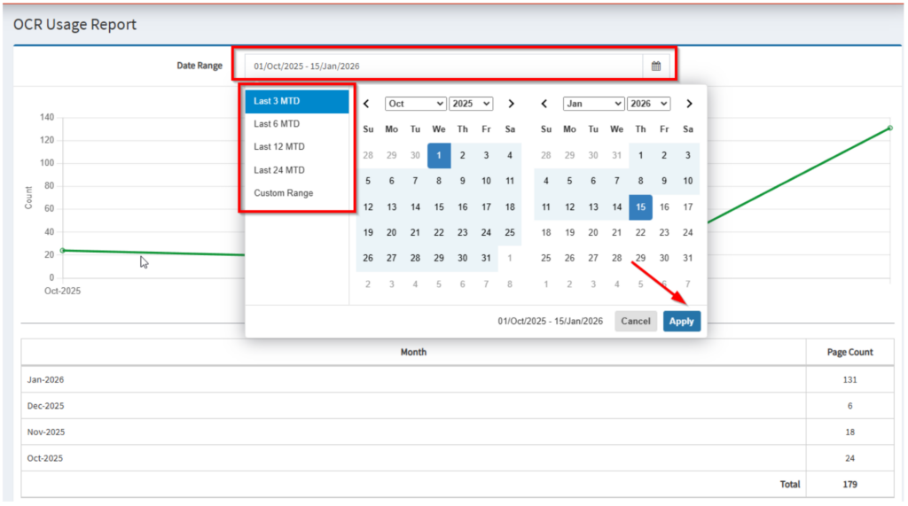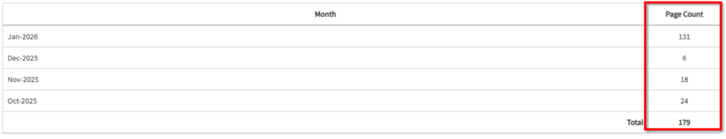 - Displays a graphical interface of month-to-date OCR page counts